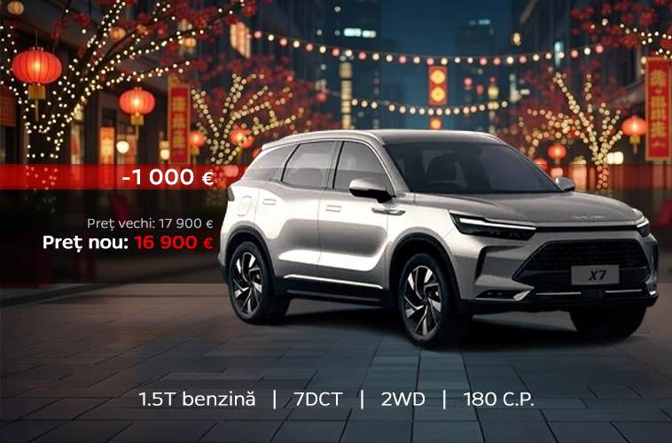 Reducerile festive la mașini sunt valabile doar în perioada 21 ianuarie - 28 februarie 2026. Sărbătoriți Anul Nou după calendarul chinezesc în cele mai bune tradiții împreună cu noi!